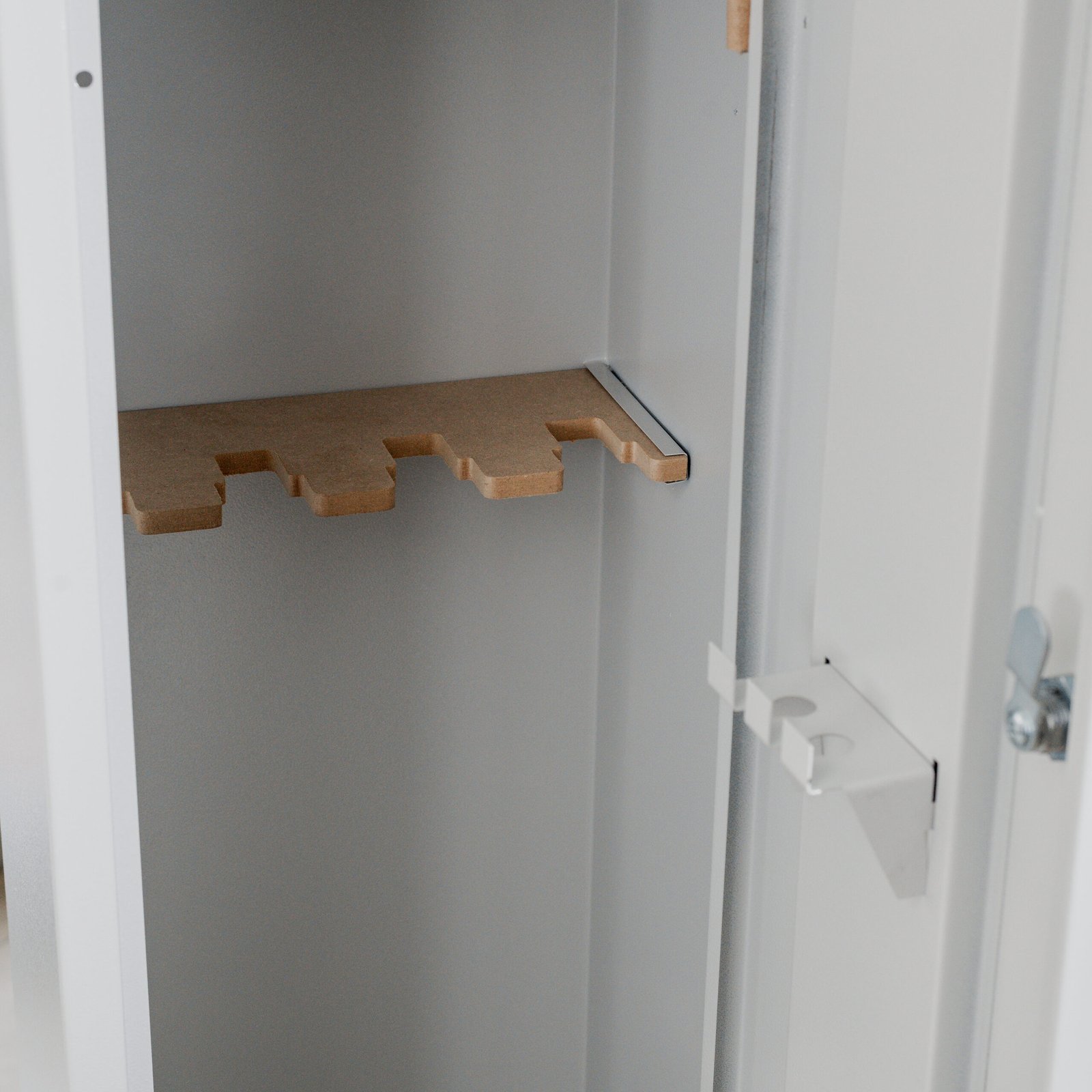 Inside the cabinet, there is a separate safe with a separate lock for storing ammunition and short barrels. Depending on the cabinet dimensions, it can store 4-6 rifles.